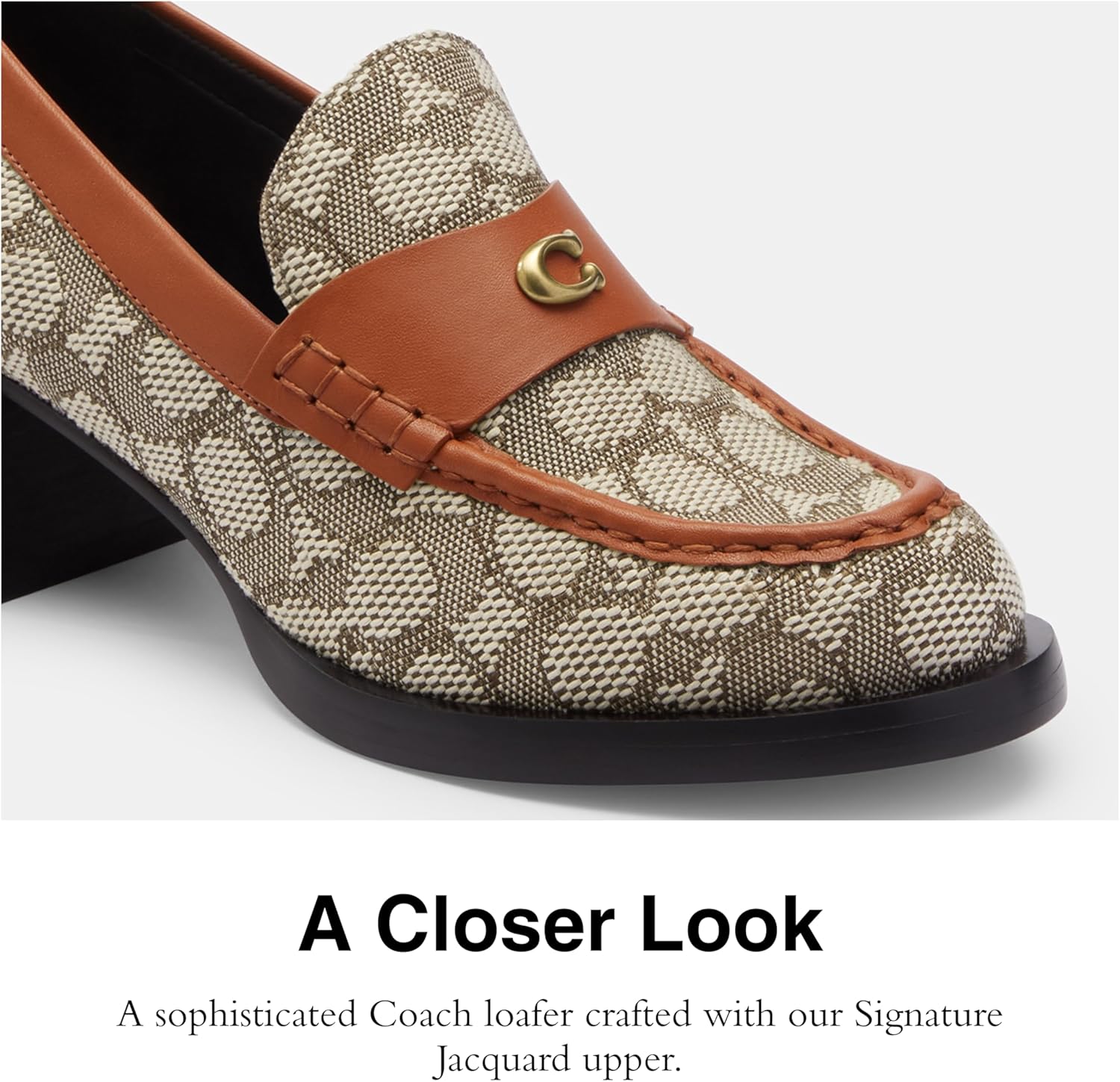 Il mocassino Coach Natalie si distingue per la tomaia in jacquard firmata, che combina eleganza e durabilità. Con un tacco da 5 cm e una fodera in pelle artificiale, garantisce comfort prolungato e uno stile raffinato adatto a diverse occasioni.