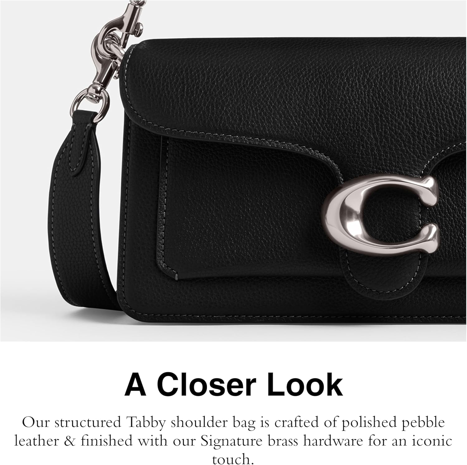 La borsa a tracolla COACH Tabby 26 è realizzata in pelle di ghiaia lucida, offrendo un aspetto elegante e resistente. Il design compatto e la finitura lucida la rendono un accessorio versatile per ogni giorno.