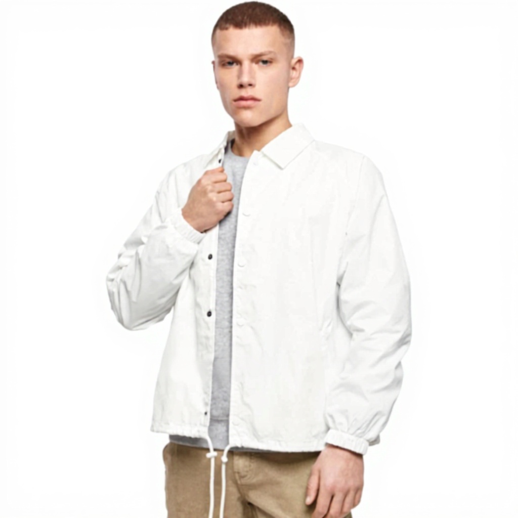 Questa giacca coach unisce stile streetwear e comfort quotidiano. Il taglio classico assicura una vestibilità perfetta, mentre il materiale piacevole e la lavorazione accurata offrono durabilità e un aspetto pulito. Disponibile in colori come bianco e nero, si adatta a diversi gusti e occasioni.