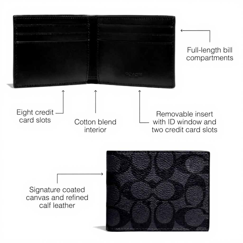 Coach Portafoglio Donna Marrone Nero Pelle Tessuto 4 Slot